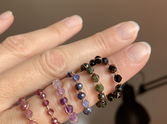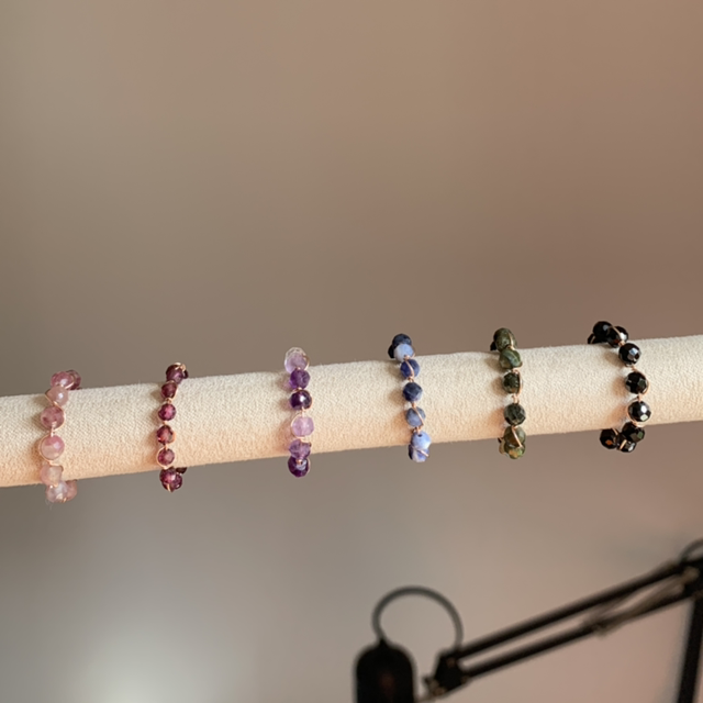 Bague, Spinelles noirs, Goldfilled rose (or rose laminé)